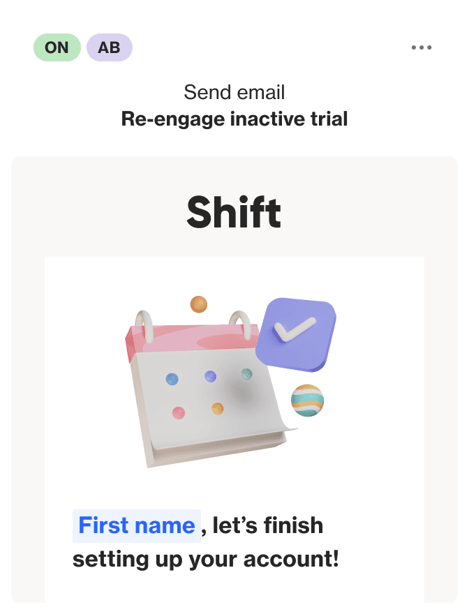 Nudge recipients toward your target action with emails that are delivered at exactly the right time, with rich personalization and contextualized content.